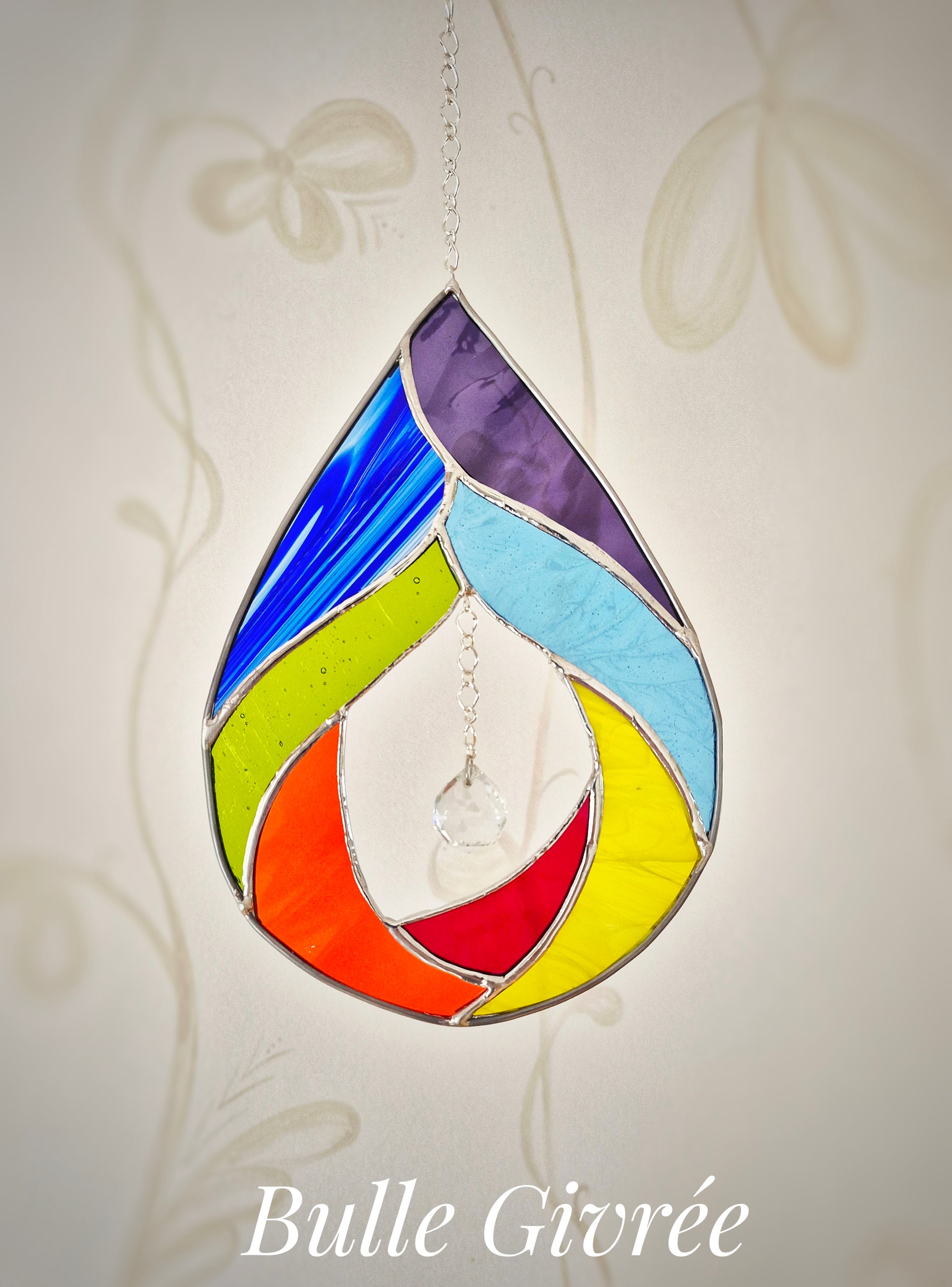 Laissez la lumière embellir votre espace avec ce vitrail capteur de lumière inspiré des couleurs des chakras. Chaque teinte, du rouge racine au violet couronne, évoque l’équilibre et l’énergie intérieure. Au centre, un prisme capte le soleil et diffuse un arc-en-ciel de lumière, créant une atmosphère paisible et vibrante. Suspendu à votre fenêtre, il devient un véritable rayon de bien-être et de beauté dans votre maison.