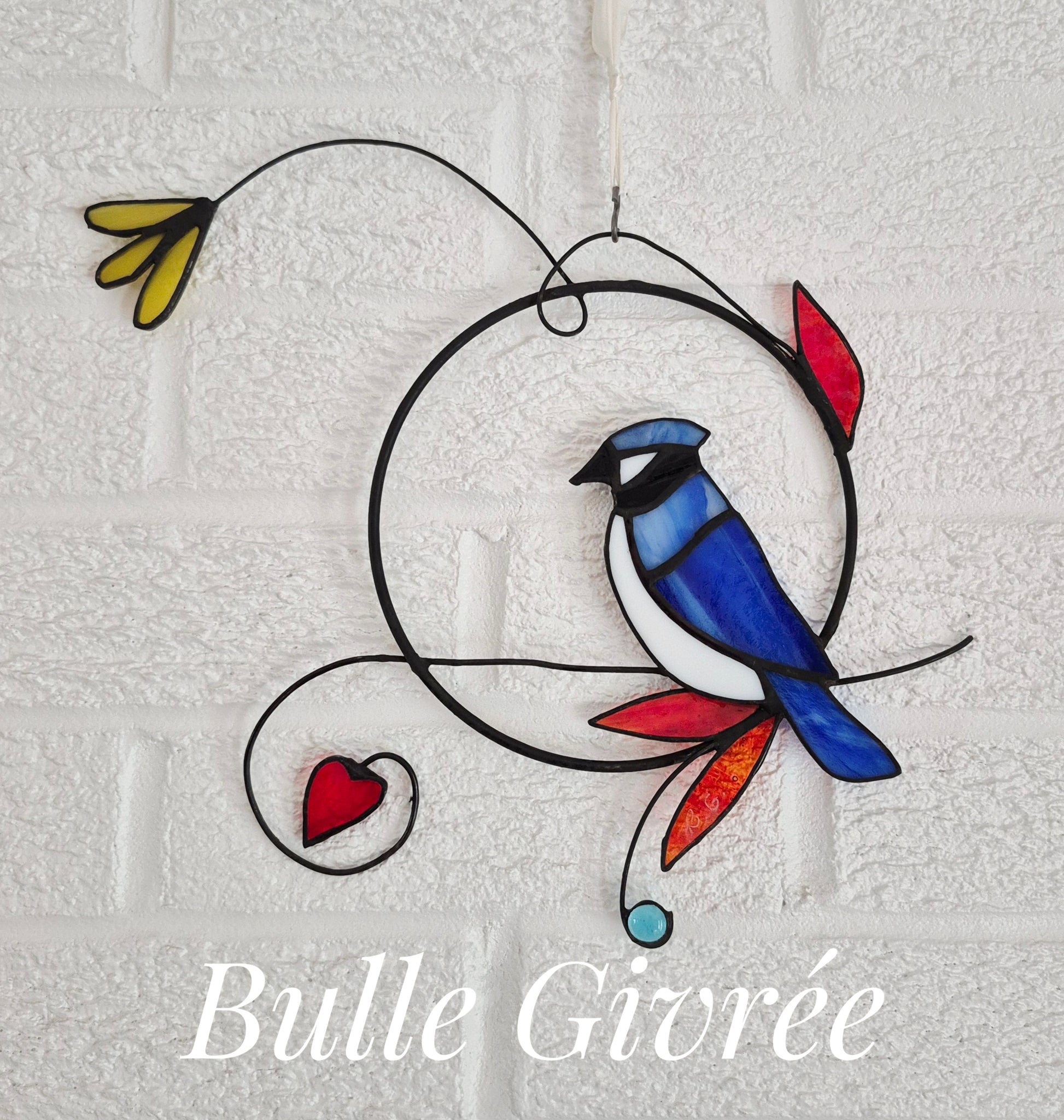 Chaque détail est soigneusement travaillé pour capturer la délicatesse de ces oiseaux, ajoutant une touche de sérénité à votre espace. Suspendez-le à votre fenêtre pour que les couleurs vives fusionnent avec la lumière naturelle, créant ainsi un effet visuel captivant. dimension : l 26 cm X H 24 cm