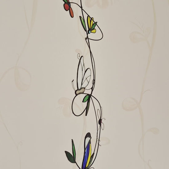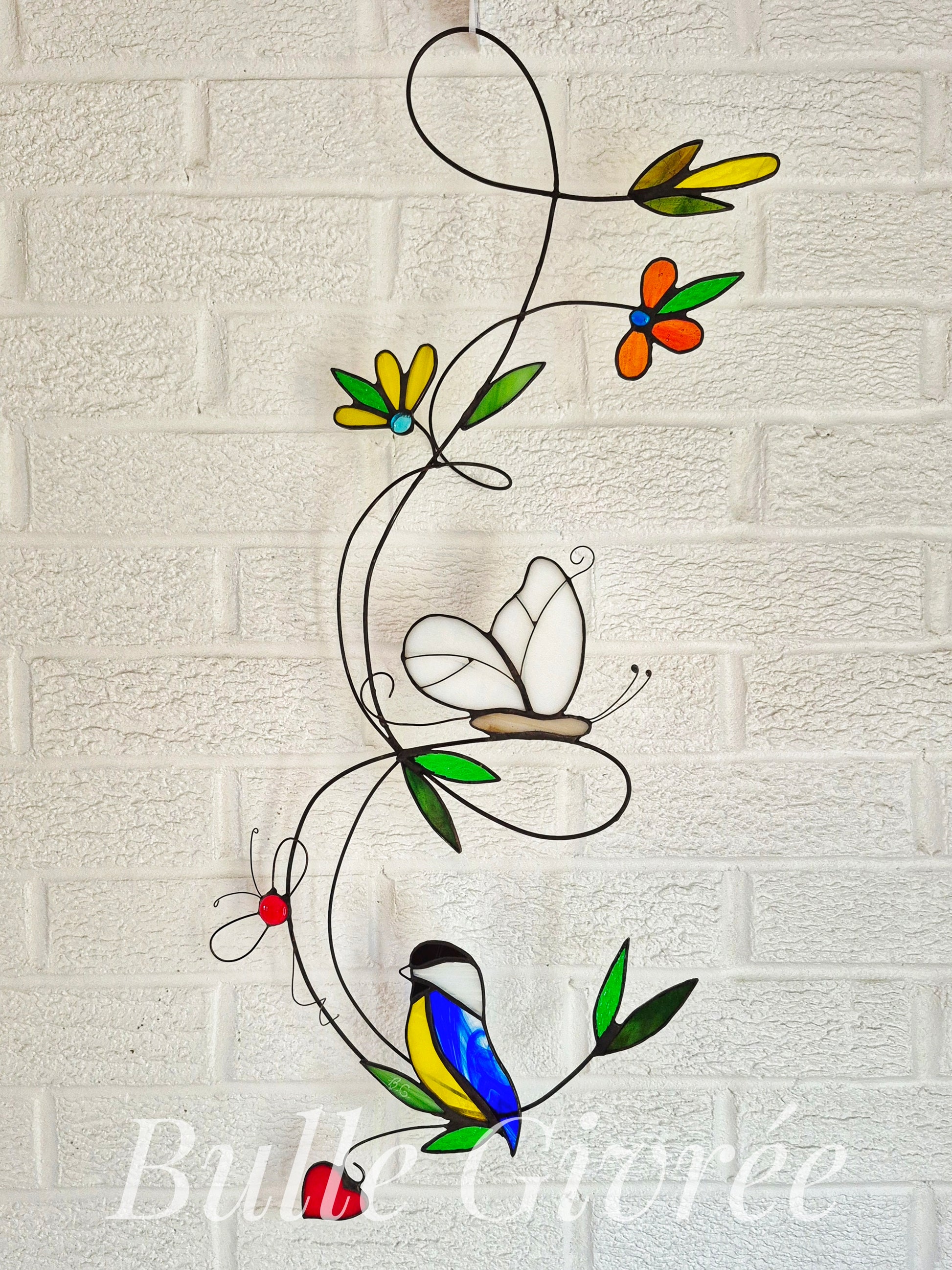 lluminez votre intérieur avec notre mobile Mésanges et Papillon en vitrail, une création délicate de 26 cm X 60 cm